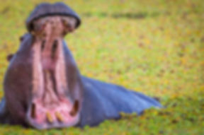 Hier in der Nähe des Governor Camps fühlen sich die Hippos wohl. Trotzdem kommt es auch hier manchmal zu kuriosen Motiven die der deutsche Wildlifefotograf Ingo Gerlach, 63, in vielen Stunden vor Ort fotografierte. Vor allem, wenn die Hippos nach einer längeren Tauchphase wieder auftauchen. Häufig haben sie dann ein Krönchen aus Wassersalat auf dem Kopf. Einige Vögel tummeln sich auch in dem Teich. Ob Blatthühnchen oder Reiher, alle Vögel wollen von den Parasiten welche die Hippos haben probieren. So kann es schon mal vorkommen, dass einem Kuhreiher im wahrsten Sinne des Wortes die Scheiße um die Ohren fliegt. Auch die Hippos drohen ihrem Nachbarn gerne mal mit aufgerissenem Maul.